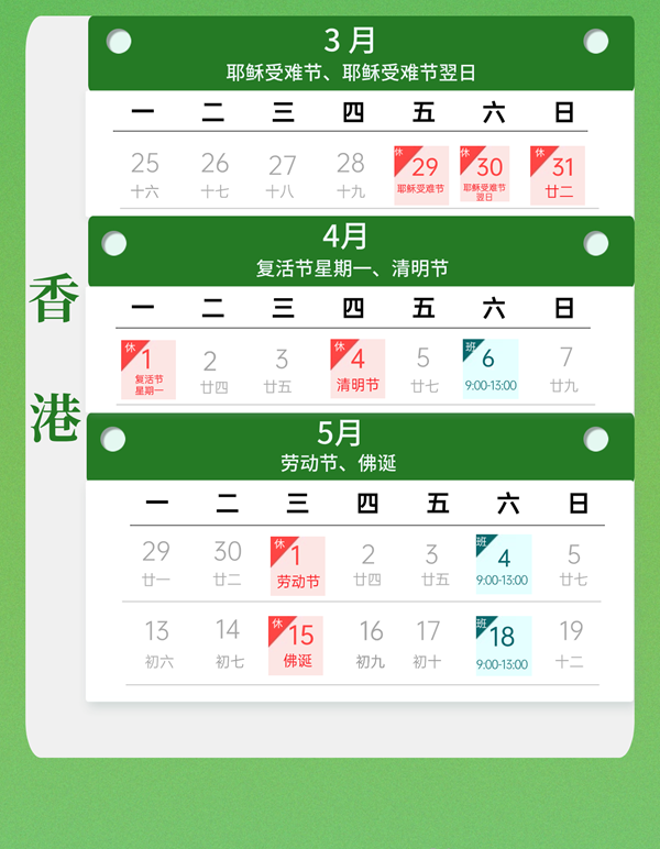 根据国家法定节假日规定,结合公司实际经营情况,现对2024年耶稣受难节、耶稣受难节翌日、复活节、清明节、劳动节、佛诞放假具体安排如下: